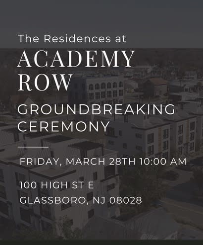 Mayor John E. Wallace III of the Borough of Glassboro expressed gratitude for the developers' efforts, as well as the efforts of our Borough Administration, in bringing this project to fruition. "This development truly exemplifies Glassboro’s long-standing vision of creating a vibrant, pedestrian-friendly corridor at the heart of our downtown. The development will consist of luxury condominiums, complemented by designated parking. Academy Row will drive continued support to our small businesses and assist in attracting new business to Downtown Glassboro.”